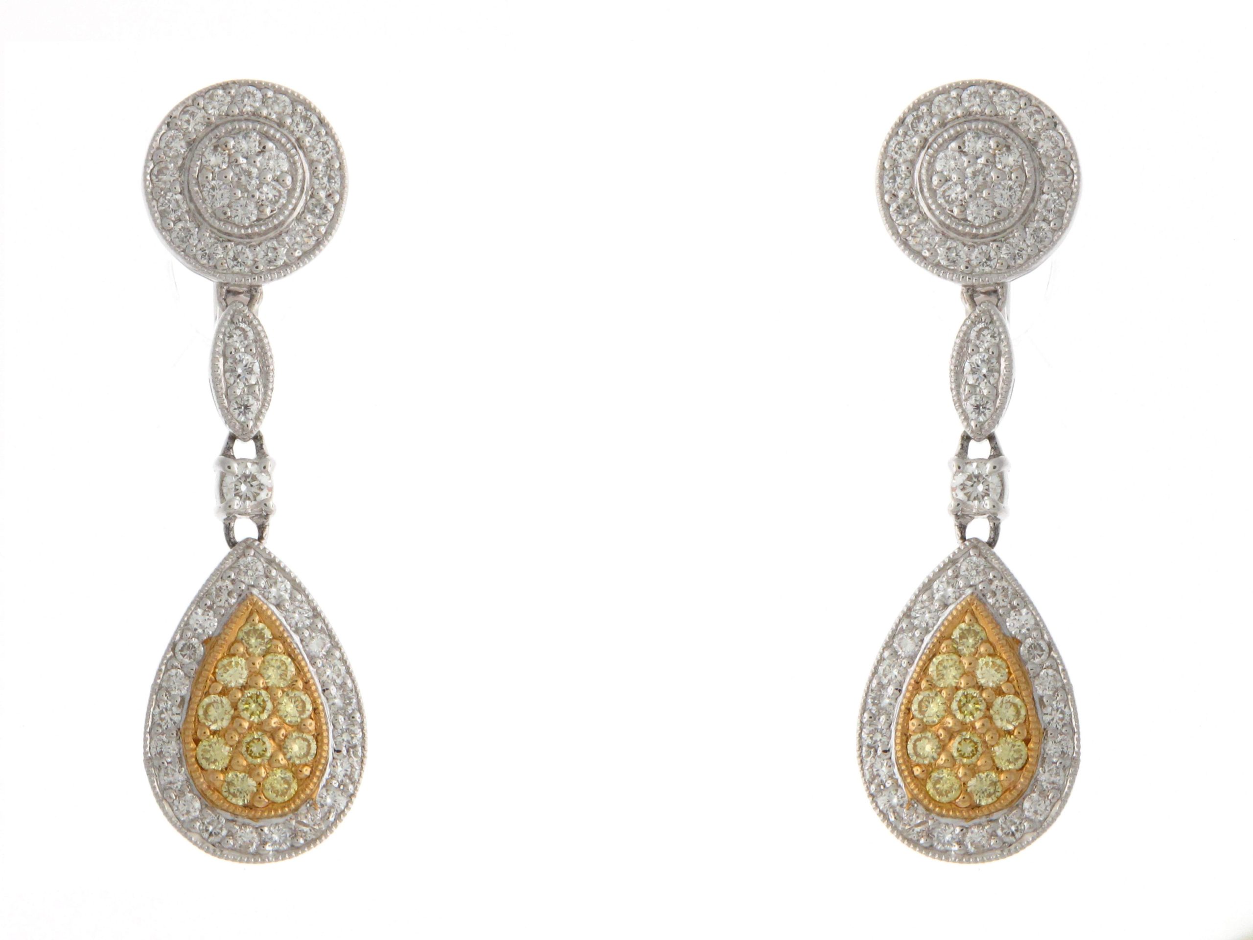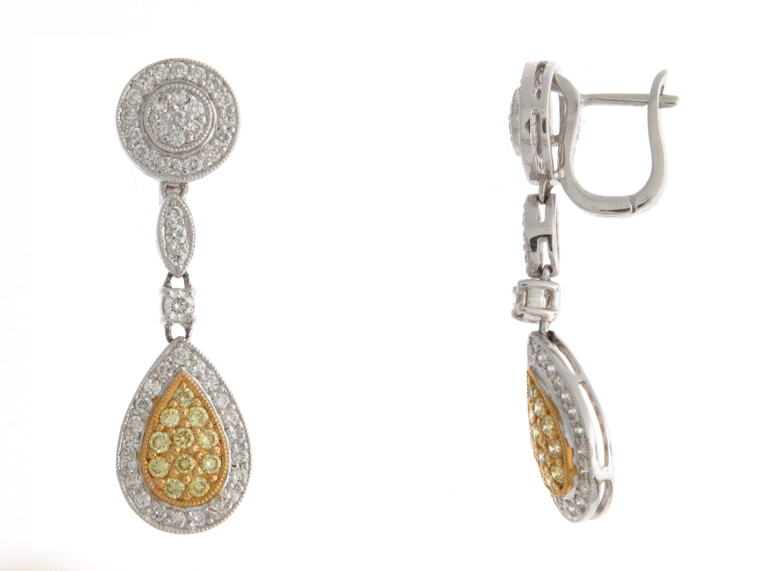 Tags: 18K WHITE GOLD, 18K YELLOW GOLD, Drop Earrings, Earrings, Fancy Color, Fashion Earrings, FLY, ROUND, Womens