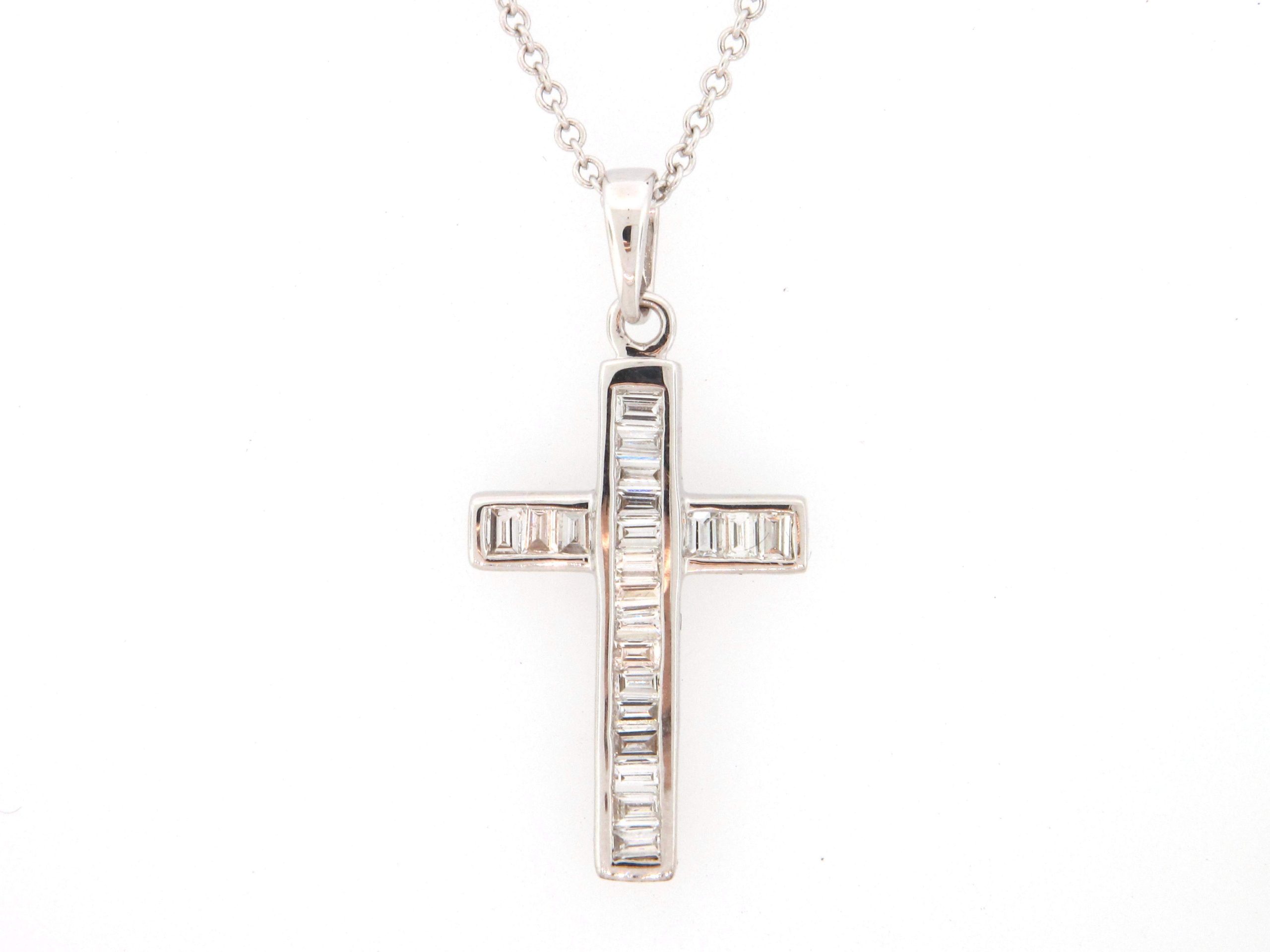 Tags: 18K WHITE GOLD, BAGUETTE, Fashion Pendants, G-H, Necklaces, Womens