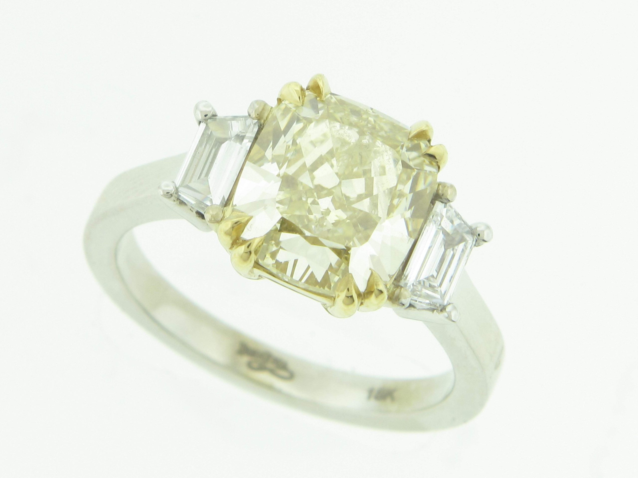Tags: 18K WHITE GOLD, 18K YELLOW GOLD, 3 Stone Rings, CUSHION, Fancy Color, Fashion Rings, FY, Rings, Womens
