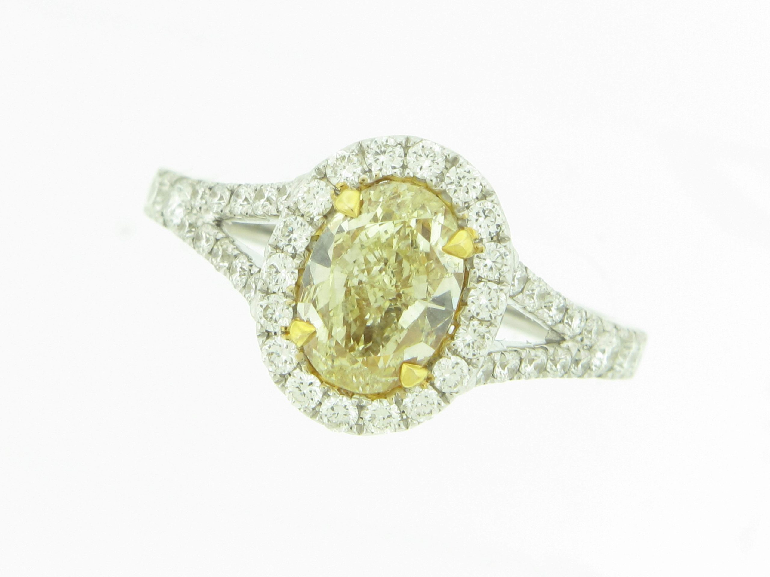 Tags: 18K WHITE GOLD, 18K YELLOW GOLD, Engagement Rings, Fancy Color, FY, Halo Rings, OVAL, Womens