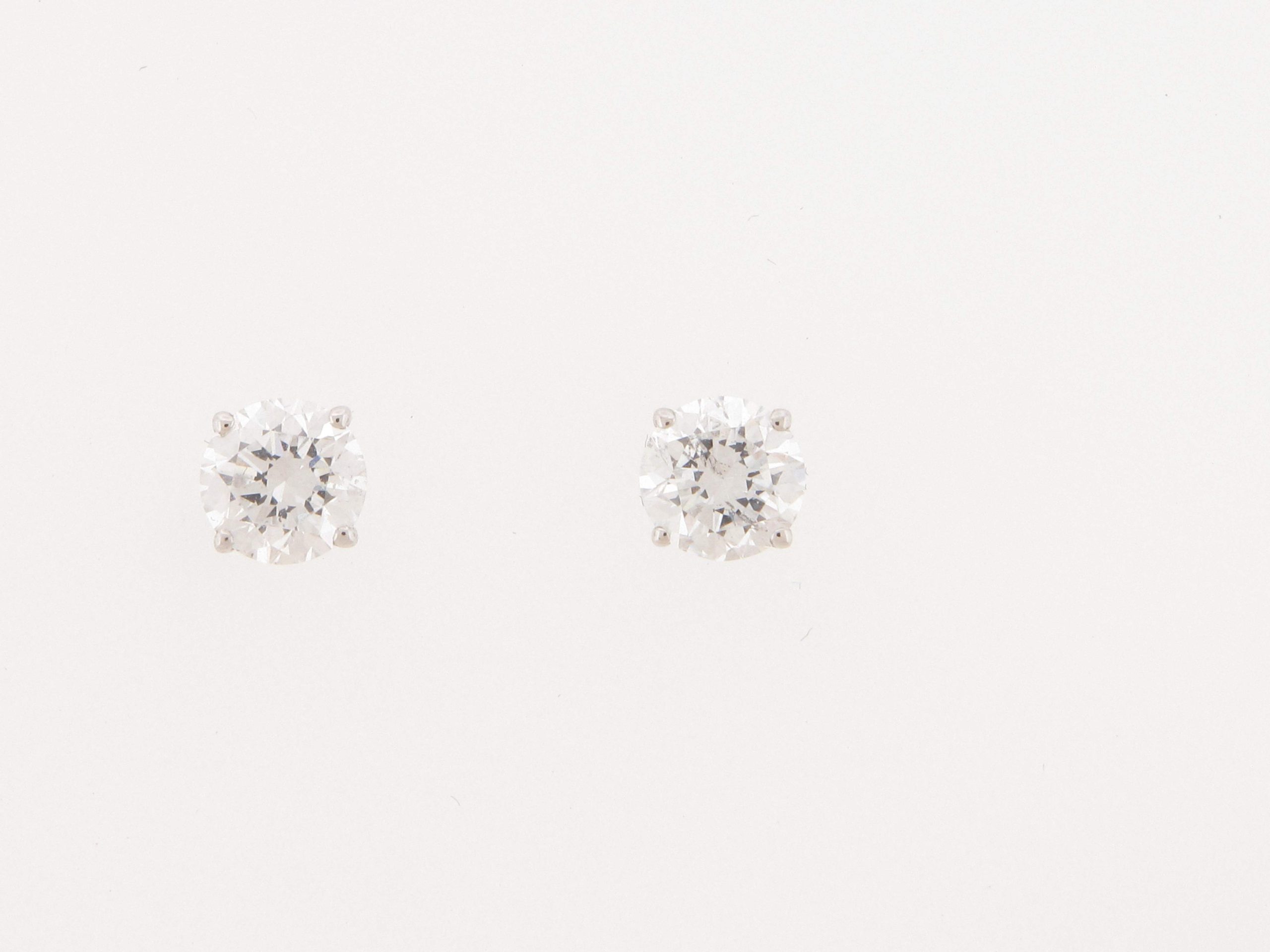 Tags: 14K WHITE GOLD, Earrings, G-H, ROUND, Stud Earrings, Womens