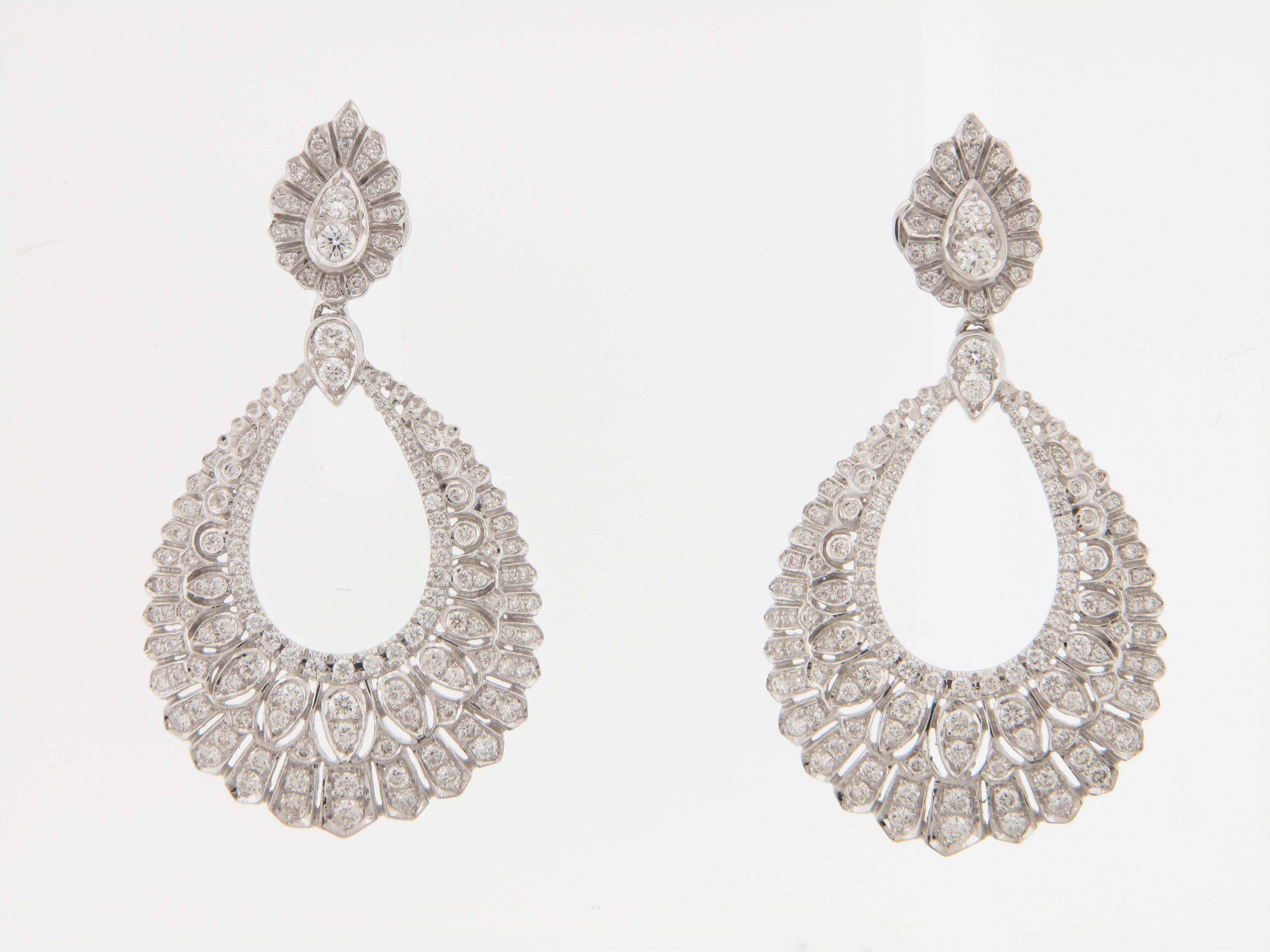 Tags: 18K WHITE GOLD, Drop Earrings, Earrings, Fashion Earrings, G-H, ROUND, Womens