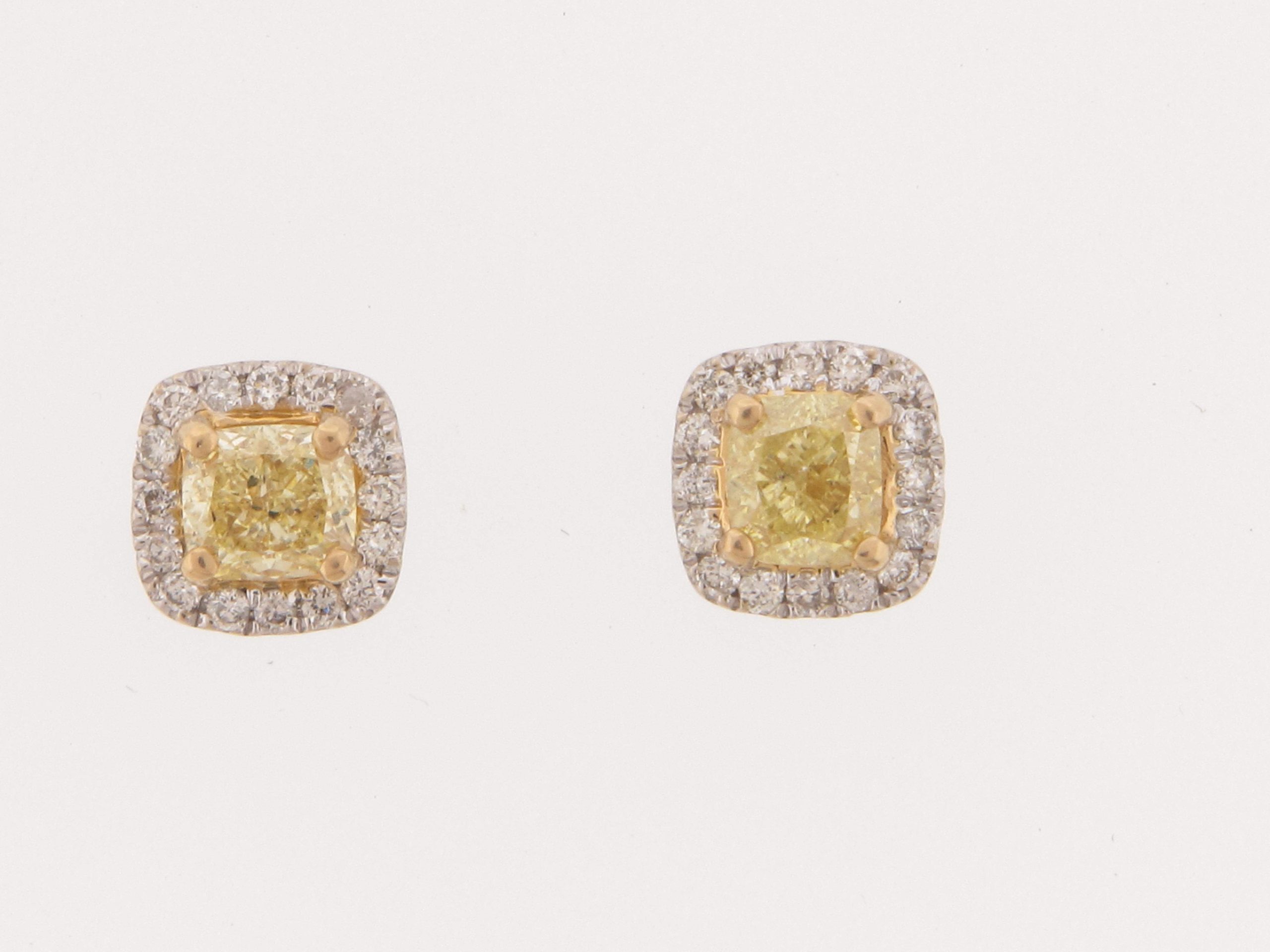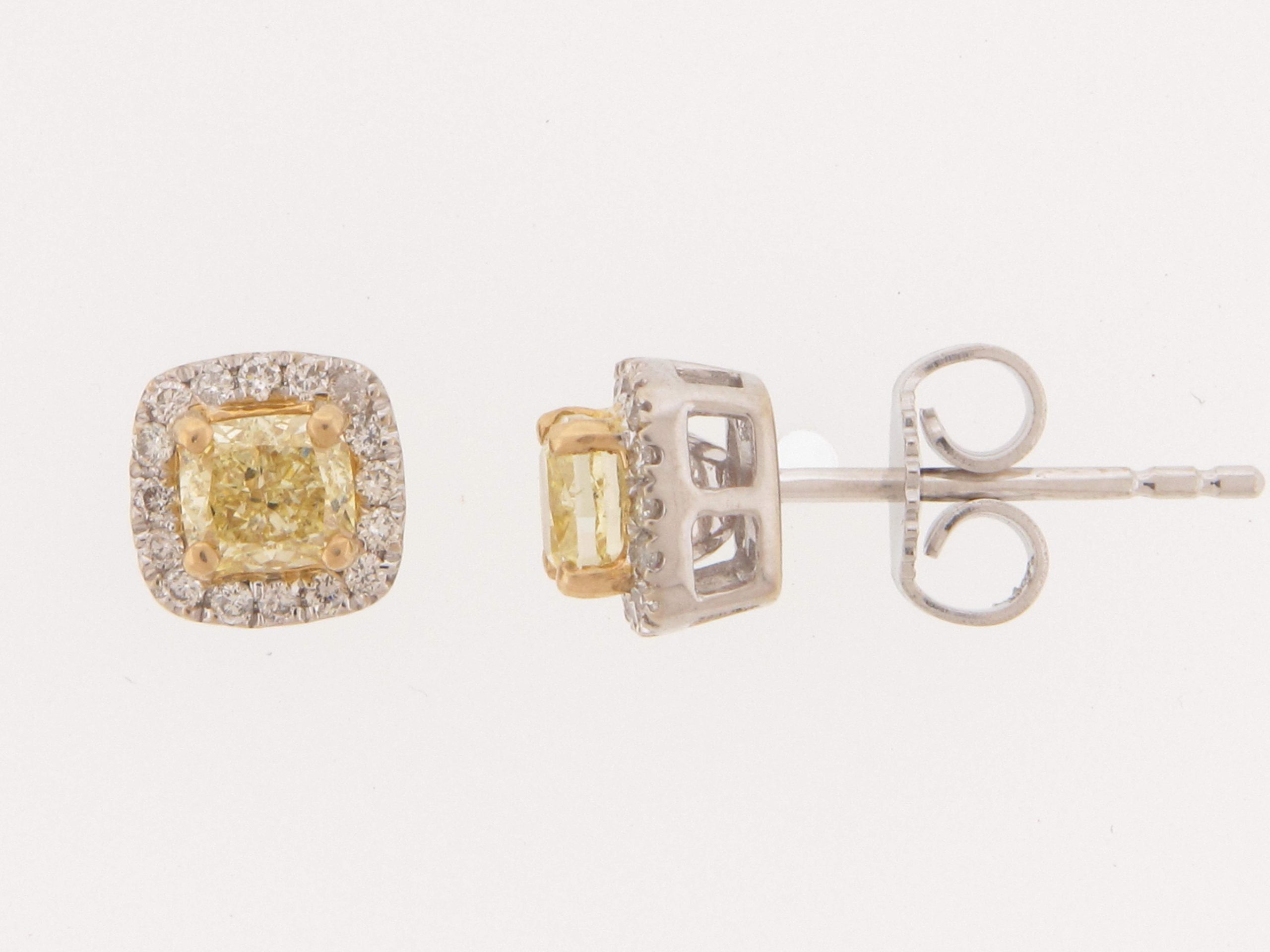 Tags: 14K WHITE GOLD, 14K YELLOW GOLD, CUSHION, Earrings, Fancy Color, FY, Stud Earrings, Womens