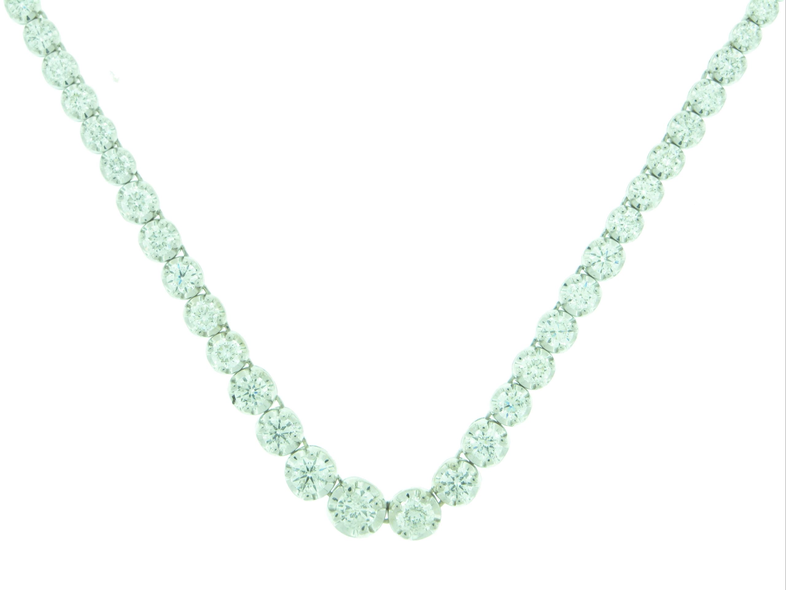 Tags: 14K WHITE GOLD, G-H, Necklaces, ROUND, Tennis Necklaces, Womens